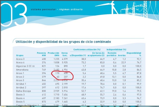 Es patético el observar como centrales como Arcos 2 con 237 h de funcionamiento a lo largo de todo el 2010 o Castellon 3 con 288 h digan que han tenido una disponibilidad del 90% o mas y que hayan percibido parte de los 1200 millones de euros que se destino el año pasado a primar la disponibilidad de dichas instalaciones. (hablo del 2010…)