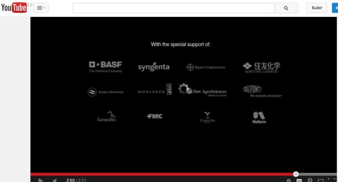 …un video que cuenta con el apoyo (entre otros) y el soporte especial de Monsanto, Basf, Syngenta, Bayer, Dow AgroSciences, DuPont, etc…