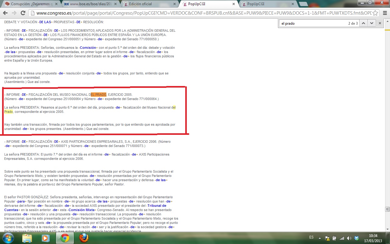 Dado que el asunto a debatir es lo suficientemente grave, la perdida de 926 obras maestras del Museo del Prado sin que aparezcan los cuadros ni los culpables, decidi perder mi mañana de domingo en investigar como nuestros políticos se preocuparon por dicha magna perdida.