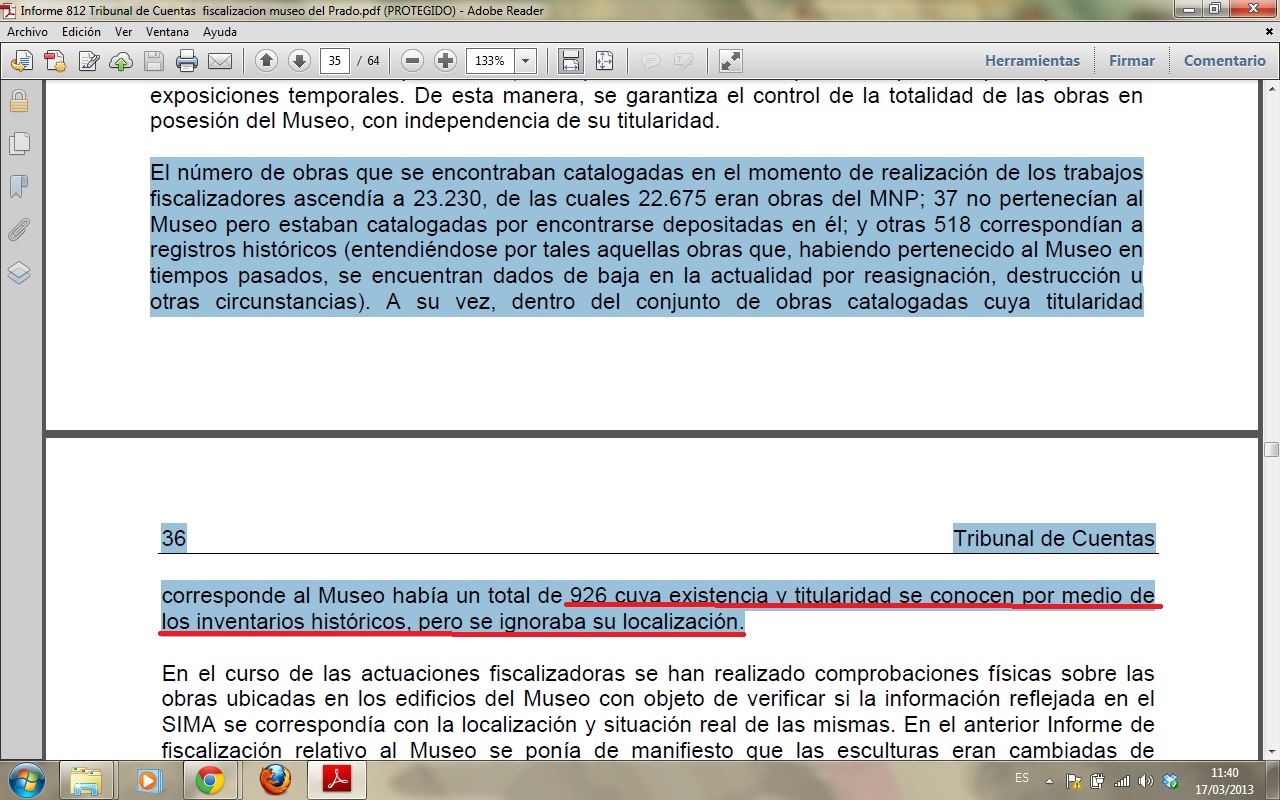 Ya había encontrado el informe del Tribunal de Cuentas…de allí extraigo esto…que es la única referencia oficial a las obras de arte ¿Juzguen Vds. si estamos rodeados de HDLGP o no?