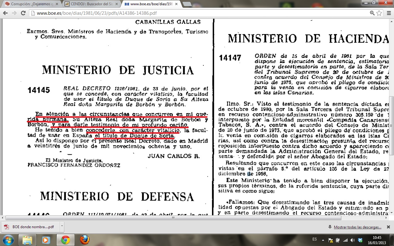 Y por supuesto una vez muerto el Duque SI QUE SALE PUBLICADO EN EL BOE en 1981…en el de papel de toda la vida y que ahora nuestros maravillosos funcionarios van digitalizando: