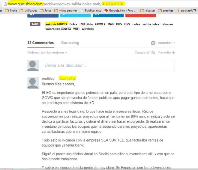 Lo triste de todo esto es que cuando Gowex inicio su salida en la bolsa del Mercado alternativo ya se comento exactamente lo que iba a suceder. HACE CUATRO AÑOS.