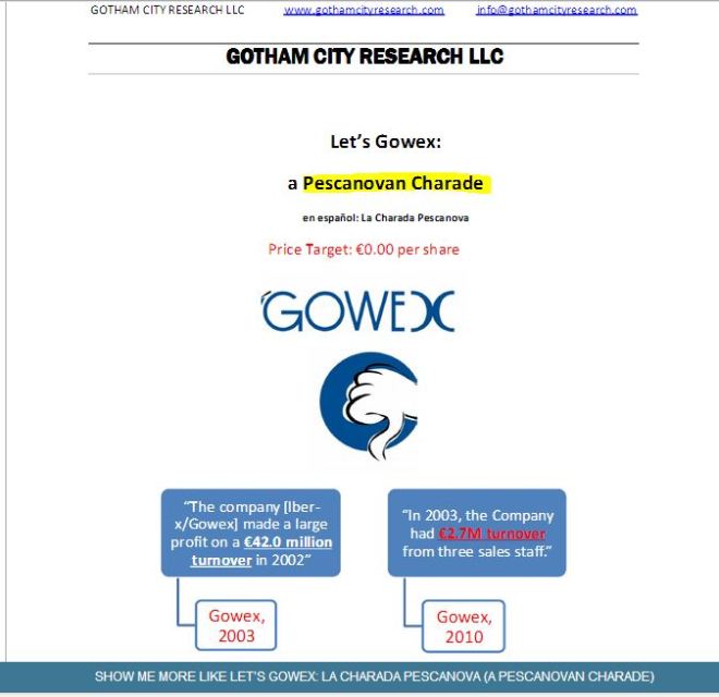La cuestión es que estos señores de Gotham City han realizado el trabajo de supervisión y control que deberían realizar nuestras organizaciones que pagamos todos. Su informe que pueden leer aquí, y que he tenido el gusto de leer (en ingles, eso si) es muy visual y fácil de entender, no hace falta ser un experto de las finanzas para darse cuenta del enorme bluff que era esta empresa.