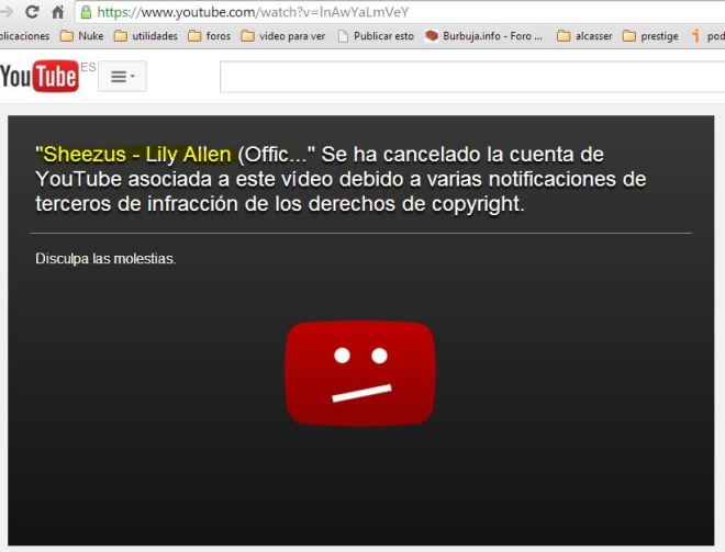 Y digo podíamos porque como todo lo que no les interesa a las multinacionales, al poder, al tremendo y oculto poder que nos mangonea, todo eso desaparece. Así que estén atentos porque donde antes podíamos ver un vídeo, uno mas entre los millones y millones que están en dicha plataforma de vídeo Youtube…este: