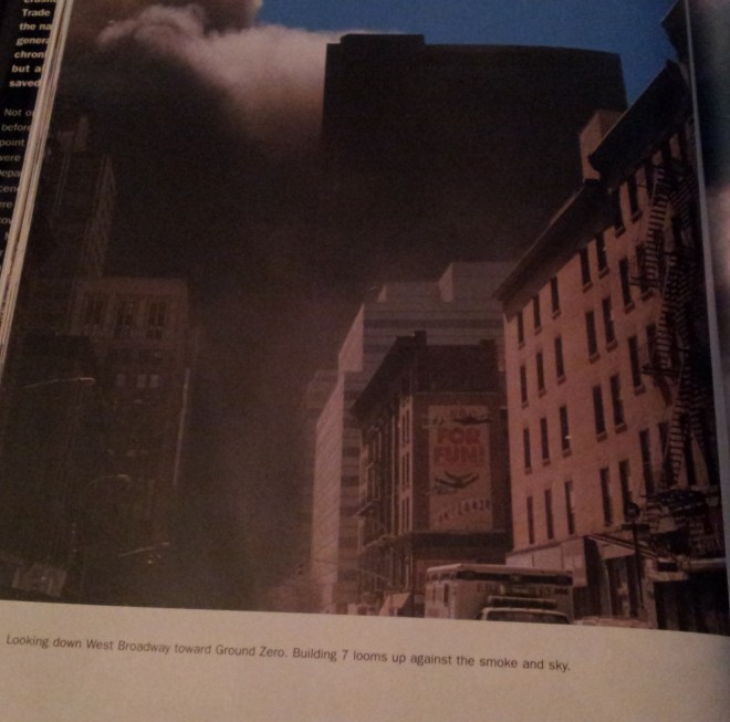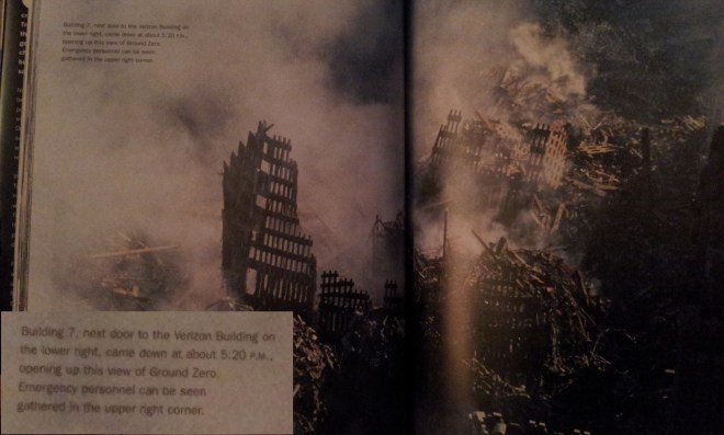 Y ahora volvamos al libro con fotos editado especialmente para que «la borregada» se trague sus basuras y lo tildó de basurilla porque casualmente no menciona para nada que el edificio 7 cayese de forma, digamos, un pelin dudosa…