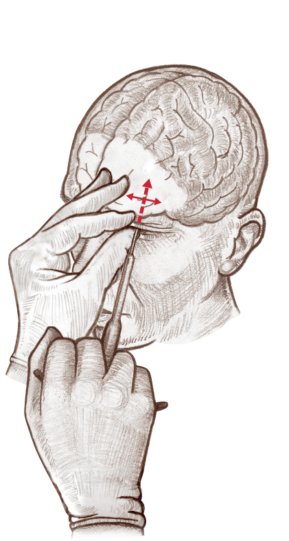 Frustrado por su falta de entrenamiento quirúrgico y la búsqueda de una forma más rápida y menos invasiva para realizar el procedimiento, Freeman inventó el «picahielo» o lobotomía transorbital, que, en un primer momento, utilizó literalmente un picahielos clavado a través de la parte posterior de la cavidad del ojo en el cerebro.