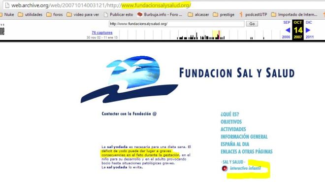 Por ejemplo, una de las webs que vocea a los cuatro vientos las ventajas de la yodación de la sal es la FundacionSalySalud.org y da la casualidad que dicha organización está patrocinada desde los USA…web desaparecida hoy día.