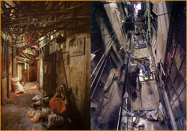 Callejuelas y algunos de los pocos patios de luces dentro de la ciudad de Kowloon