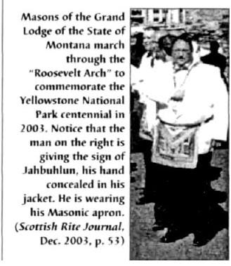 Masones de la Gran Logia del estado de Montana marcharon a travpes del «Rosselvet Arch» para conmemorar el centenario del Parque Nacional de Yellowstone en el 2003