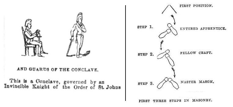 De acuerdo con las investigaciones, en algunos retratos como los de Napoleón, la posición de los pies, parecen jugar un papel importante en la realización del gesto masonico.