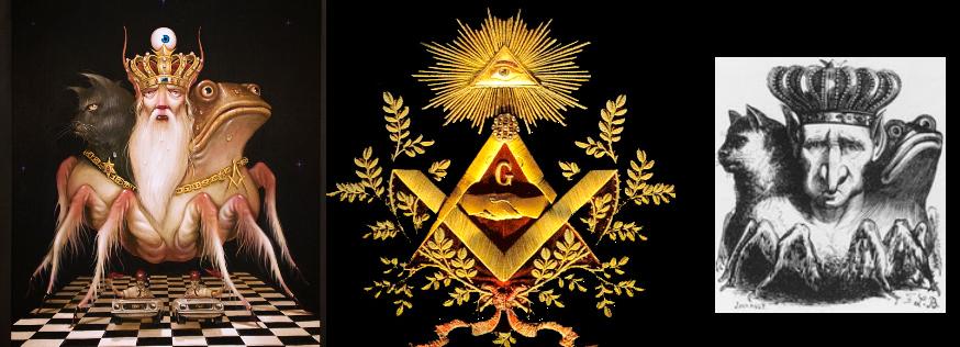 Wsto es tan curioso, no sólo porque la cabeza de rana y el gato son simbolismos comunes en la hechizería, sino también por la profecía escrita en la Biblia en el libro de apocalipsis, que me viene a la menta al ver la representación del dios de los masones.: