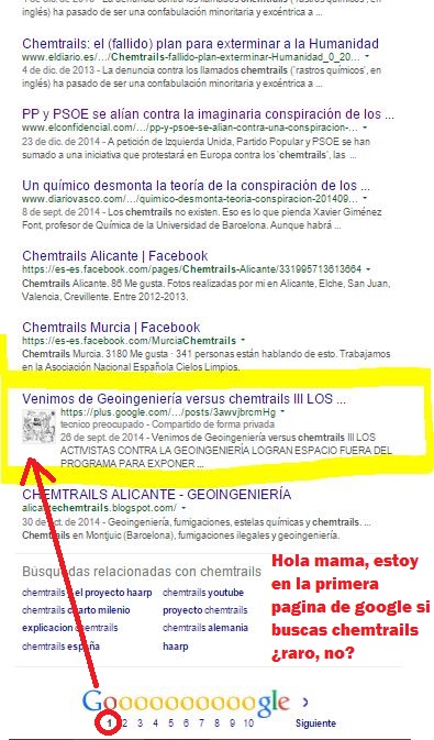 Si buscáis el termino chemtrail en google os va a aparecer esto…