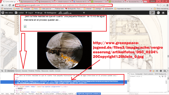 En un artículo titulado Como evitar que exploten los cilindritos sorpresa nucleares les mostraba donde esconden los residuos nucleares que ya no les sirven para hervir agua en sus «teteras atómicas» o para fabricar armas nucleares. En ese artículo figuraba una fotografía que estaba almacenada y publicada en un servidor de Greenpeace. Ya no está.
