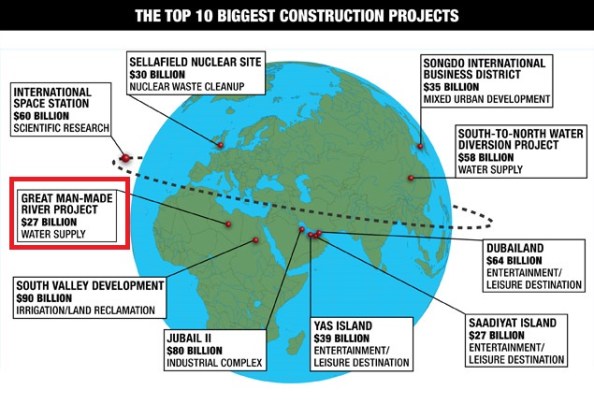 Y es que mientras Libia daba trabajo a medio mundo con su megaproyecto Gran rio hecho por el hombre que pretendía explotar un acuífero para hacer fértil a Libia y por tanto hacerla independiente, las naciones y las multinacionales del mundo le rendían pleitesia.