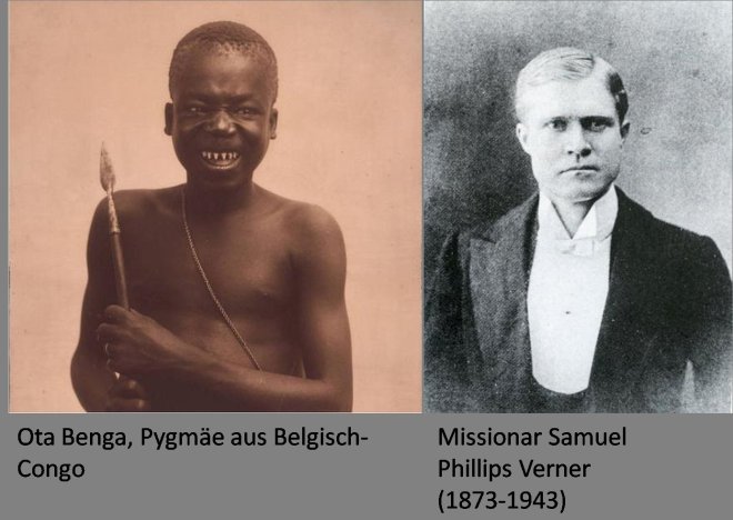 En ese contexto el misionero Samuel Phillips Verner fue enviado a África en 1904 para «reclutar» especímenes negros para la exposición universal de San Luis (USA) de 1904.