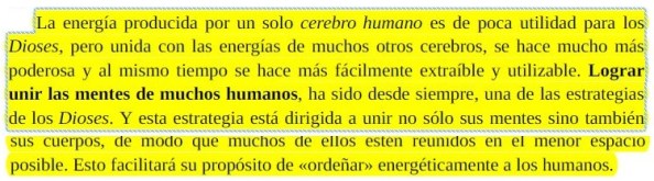 En él podemos leer la teoría que nos ofrece el señor Freixedo que nos habla de que todas las religiones han servido a seres que fingiendo ser Dioses (con mayúsculas) tan solo eran meros entes poderosos que necesitaban entrar en contacto con el ser humano.