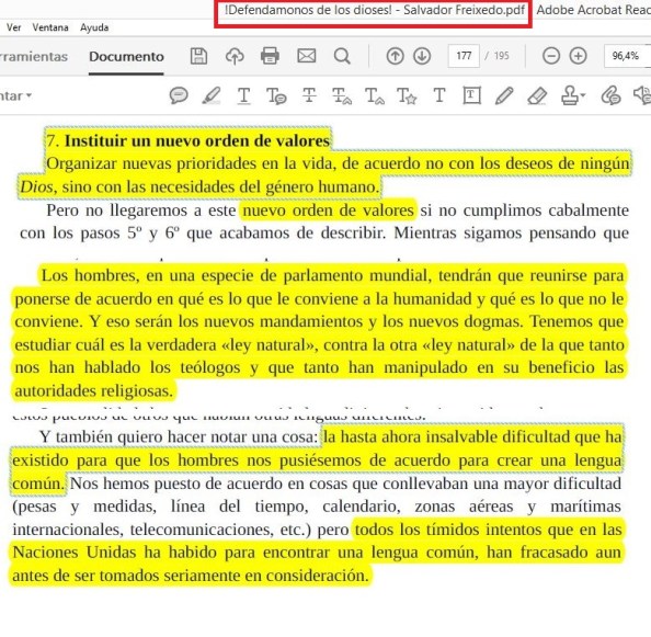 Y ya por ultimo quiero mostrar como en este libro del señor Salvador Freixedo se nos introduce de lleno la idea de que el NOS, el Nuevo Orden Secular introducido a través de organizaciones supranacionales es lo mejor que nos puede pasar.