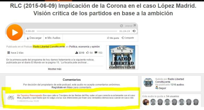 En ese comentario como podrán ver yo le pedia al sr Trevijano que expusiera el caso bar España, un caso que es tan real como este del amigo intimo de nuestro actual monarca. Se lo he pedido muchas veces, por Twitter y en comentarios de IVOOX.