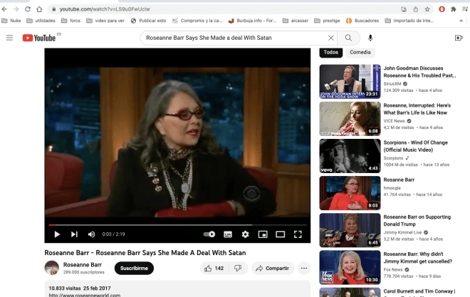 (Nota UTP. Este desapareció, se titulaba «Roseanne Barr Says She Made a deal With Satan»)
