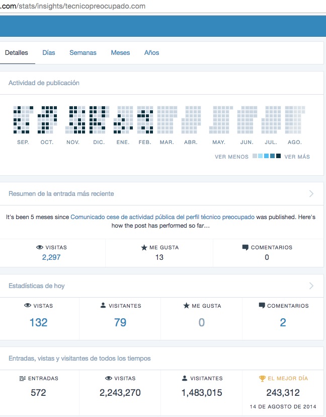 Ya ven que hace dos años exactos fue el mejor dia del blog con casi un cuarto de millón de visitas en un solo dia…hoy dia 13 tan solo lleva unas 132 visitas.