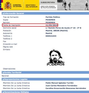 Fecha alta partido Podemos