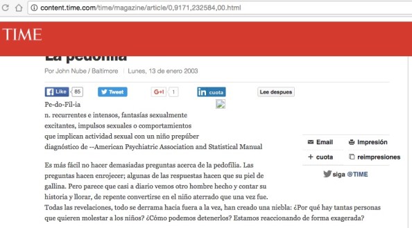 Hablamos por ejemplo de la prácticamente nula persecución de los pederastas de la elite, y de como instituciones científicas o periódicos de la importancia del TIME han intentado normalizar este tema.