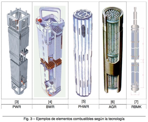 En España como vemos en la imagen superior tenemos dos tipos de reactores, los BWR (de agua en ebullición) y los PWR (o de agua a presión, no se me enfaden los que tienen carreras, explicado de manera sencilla) pero hay otros muchos tipos de estructuras para manejar el combustible nuclear…