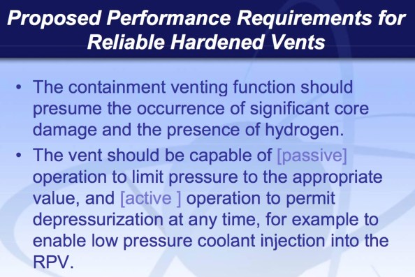 Nuestra central de Garoña tiene una contención Mark I con unas penetraciones rajadas y dudo muchísimo que disponga de la ventilación endurecida que se especifica en este mandato de obligado cumplimiento en los USA…las centrales que no lo implementasen perderían la licencia.
