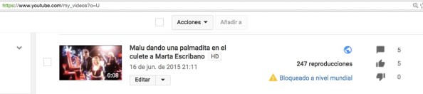Mi video de 7 segundos fue rapidamente bloqueado a los dos días y solo llego a las 247 visualizaciones…