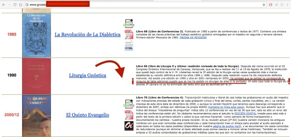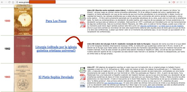 Esto es una captura de pantalla de una biblioteca gnóstica. Los números a la izquierda nos indican la fecha del lanzamiento de dicho libro.