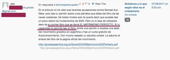 Evidentemente y como dije en el segundo artículo mi intención no es descalificar a una persona, pero no trago cualquier cosa, créame, y sí, mi capacidad lectora me permitió en su momento digerir ese supuesto elixir de la sabiduría encerrado en aquellas paginas.