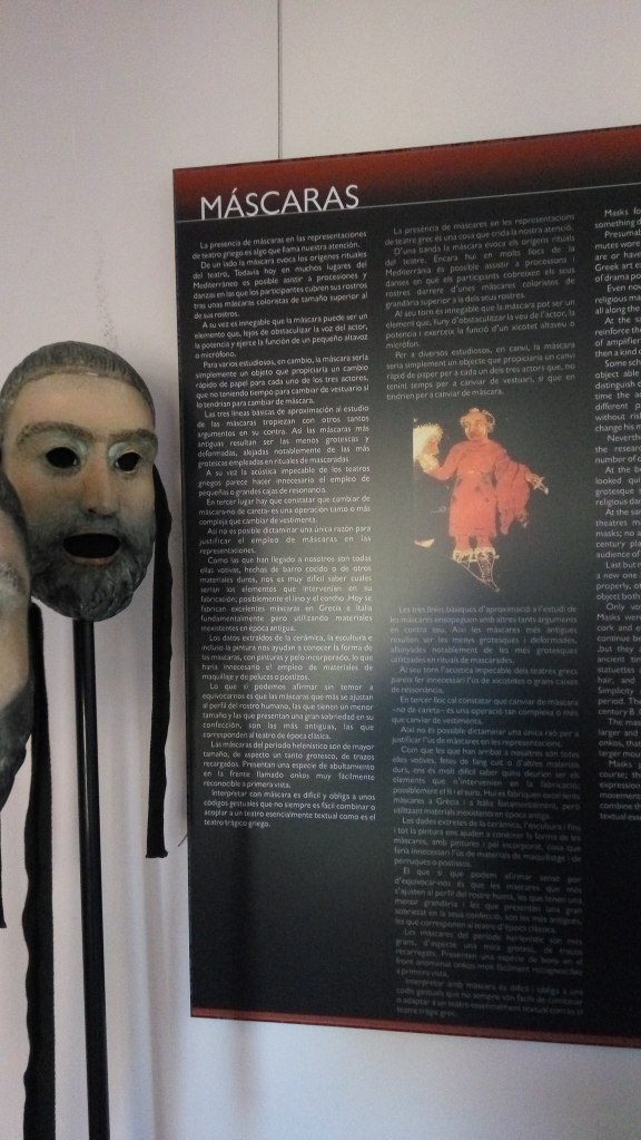 Como podemos leer en esta exposición de máscaras del antiguo teatro greco-romano, las máscaras evocan los orígenes rituales del teatro y su idiosincrasia que marca el carácter identitario como pueblos mediterráneos.