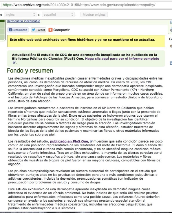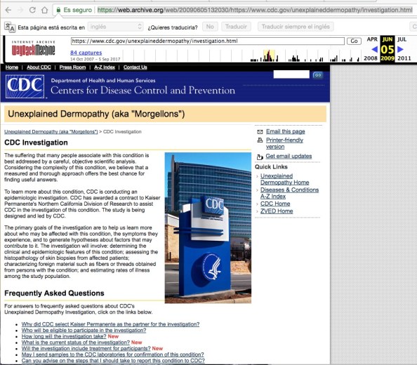 Página web operativa del 2007 al 2012 desaparecida del CDC sobre investigación morguellons