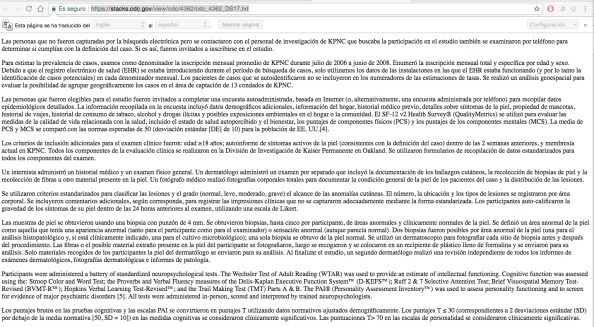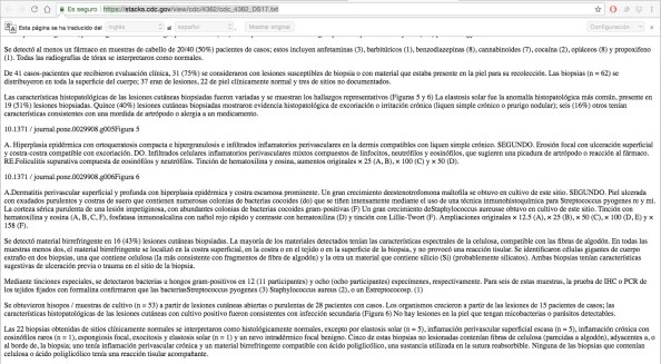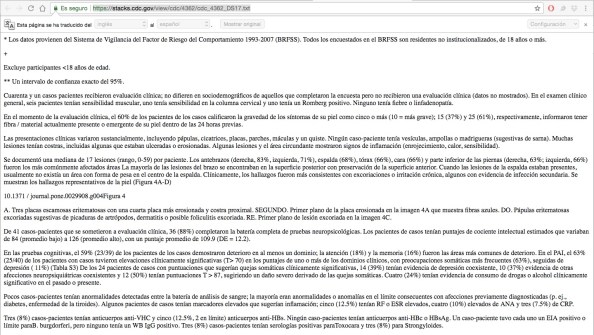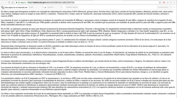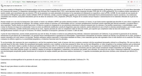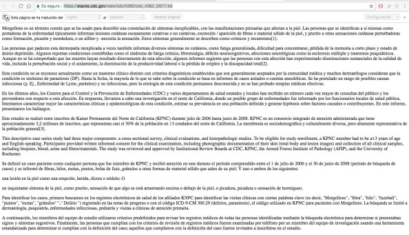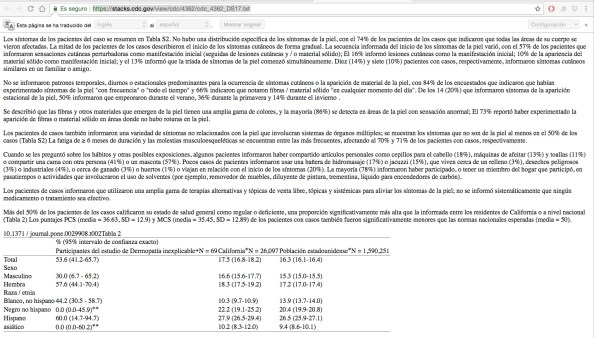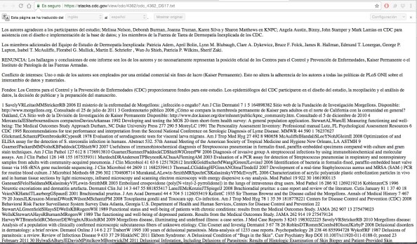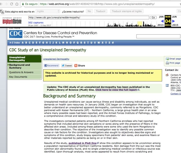 Captura de la página desaparecida del CDC sobre investigación morguellons