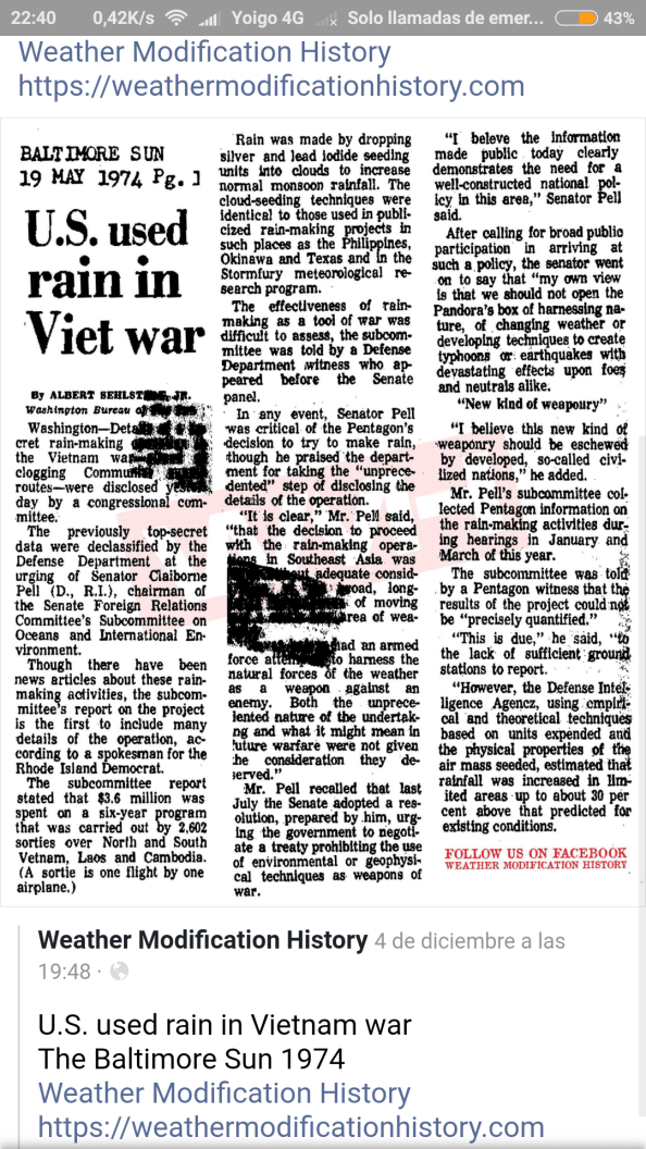 Lo que unos pocos locos vaticinamos sobre lo que ocurriría con los chemtrails ya está pasando. Dijimos que no tardarían en sacar a la luz «su» verdad sobre estas terribles fumigaciones globales que hacen pasar por algo bueno llamado Geoingeniería.