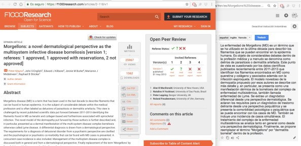 Web que dice que los morgellons son un síntoma de otra enfermedad llamada bartonellosis
