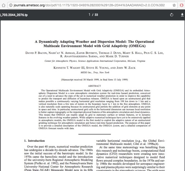 Esto se debe a que el modelado de la dispersión atmosférica involucra prácticamente todas las escalas de movimiento atmosférico desde la turbulencia a microescala hasta las ondas a escala planetaria…