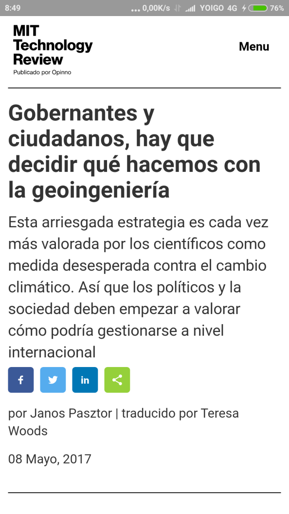 Gobernantes y ciudadanos, hay que decidir qué hacemos con la geoingeniería