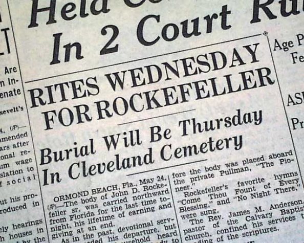 Hablaremos de ese filántropo llamado John D. Rockefeller…la D es de Davison (hijo de Davi o David) al que enterraron con un «sencillo ritual» en publico…