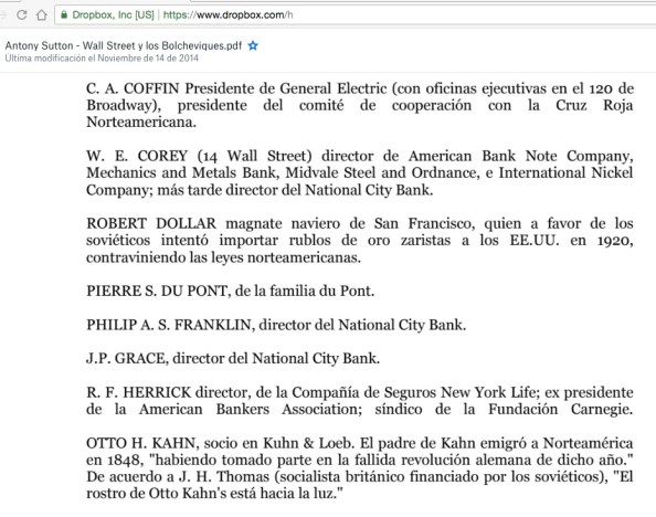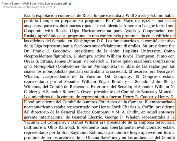 Anthony Sutton en su libro“Wall Street And The Bolshevik Revolution”, el cual les recomiendo que lean, nos habla con documentos oficiales desclasificados de cosas como la American League to Aid and Cooperate with Russia (Liga americana de ayuda y cooperación con Rusia).