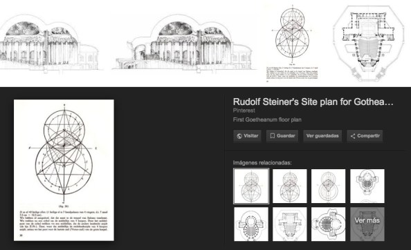 Pueden ver muchas fotografías antiguas de ese extraño edifico y del nuevo que lo sustituyo aquí. Porque en la noche vieja del 31 de diciembre de 1922 un incendio provocado aparentemente por los enemigos de la antroposofía y del propio Steiner (los nazis…así ahorramos tinta) lo destruyeron incendiándolo aprovechando que casi todo era de madera.