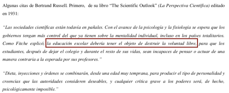 La educación como decía Bertrand Rusell «estará bien confinada a la clase gobernante y al populacho no se le permitirá saber como estas convicciones fueron generadas«…aquí otro par de citas del premio Nobel.