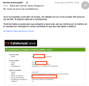 019 provisión fondos procurador 4 marzo 2016 400 euros