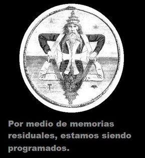 …por medio de memoria residual estamos siendo programados y esto son técnicas de magia muy negra. (Nota UTP. Notese el Ouroboros que circunscribe a la imagen del mago negro)