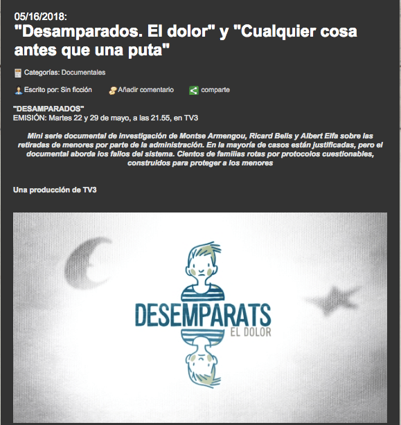 Veamos como han promocionado desde la televisión publica catalana este documental que supuestamente va de niños en centros de menores…de pobres niños desamparados.