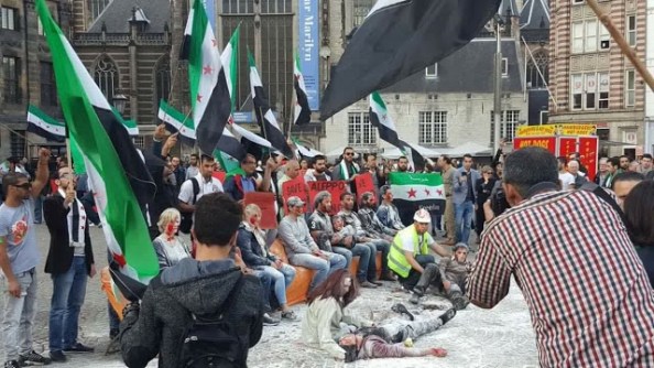 Representación en una ciudad europea de un supuesto acto terrorista del presidente sirio