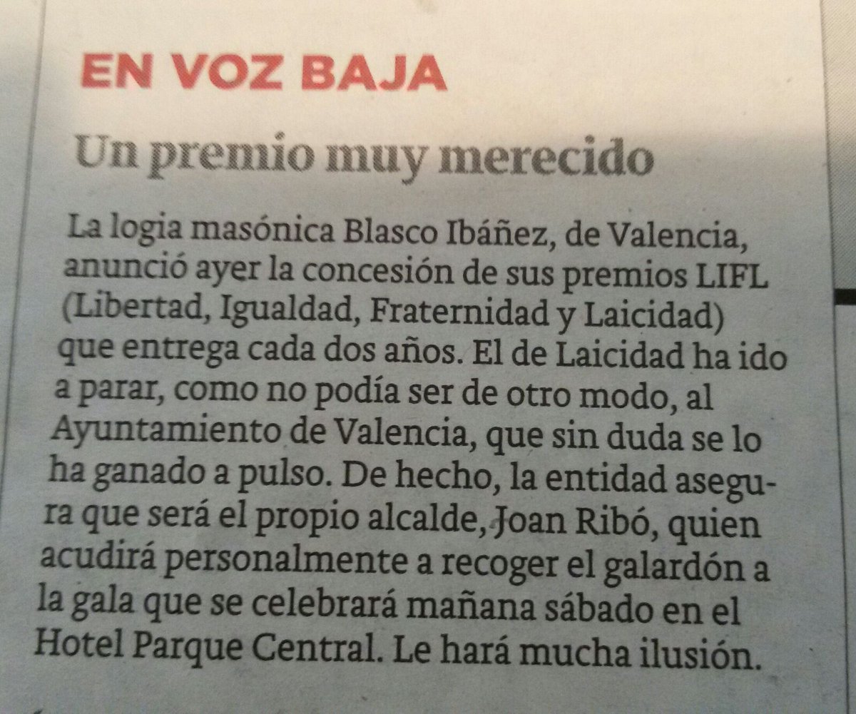 Libertad Igualdad y Fraternidad Premio logia Blasco Ibañez al ayuntamiento Valencia
