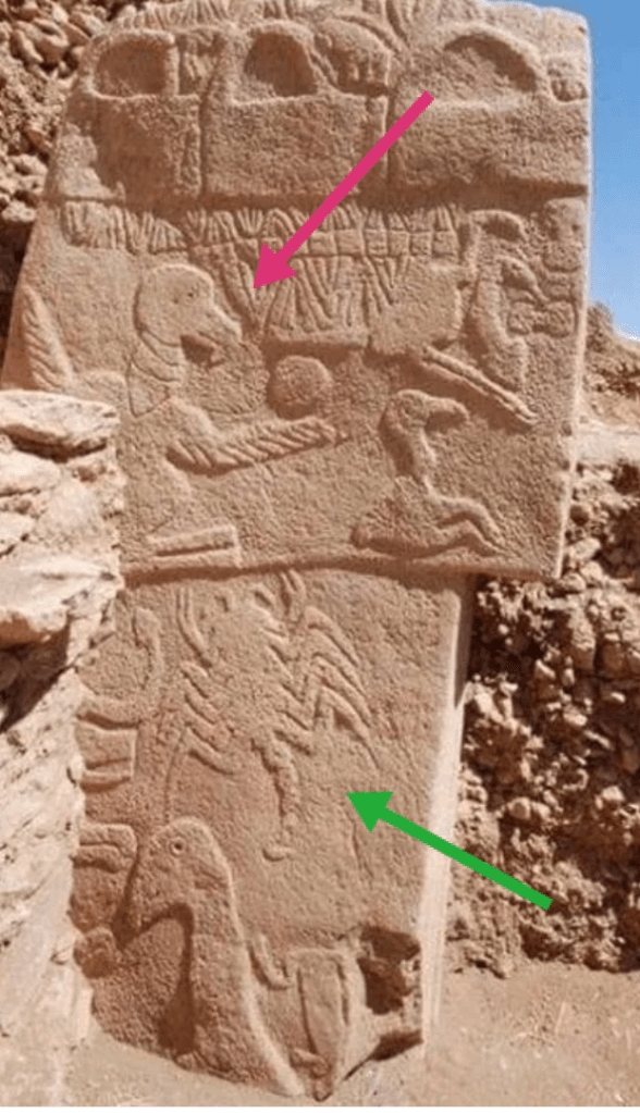 Los relieves de los pilares incluyen zorros, leones, jabalíes, asnos salvajes, garzas, patos, escorpiones, hormigas, arañas, unas pocas figuras y a nuestra archiconocida Serpiente, hasta en forma de Ouroboros, ese círculo de Serpiente que se muerde la cola que pudimos visualizar en la Orden del Dragón.