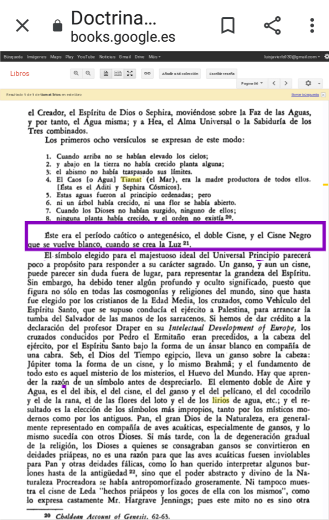 En la alquimia aparece no sólo el Lirio en forma de Flor de Lis sino también el pajarito en forma de Águila y la ocultista Madame Blavatsky en su libro «La Doctrina secreta» nos los describe asociándolos al culto a la Madre primigenia, cosa que no dudamos tras todos los datos expuestos en esta revisión aunque Tiamat no es en sus inicios Caldea sino Sumeria.