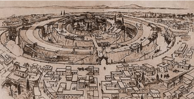 La ciudad estaba integrada por tres círculos concéntricos de tierra y tres círculos concéntricos de agua…